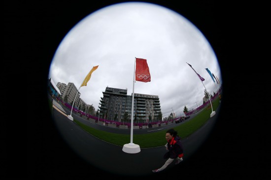 当日,距离奥运会开幕还有11天,伦敦奥运村正式开门迎客,来自50多个国家和地区的千余名奥林匹克大家庭人员抵达奥运村,其中包括三百多名运动员。图为奥运村外彩旗围绕。